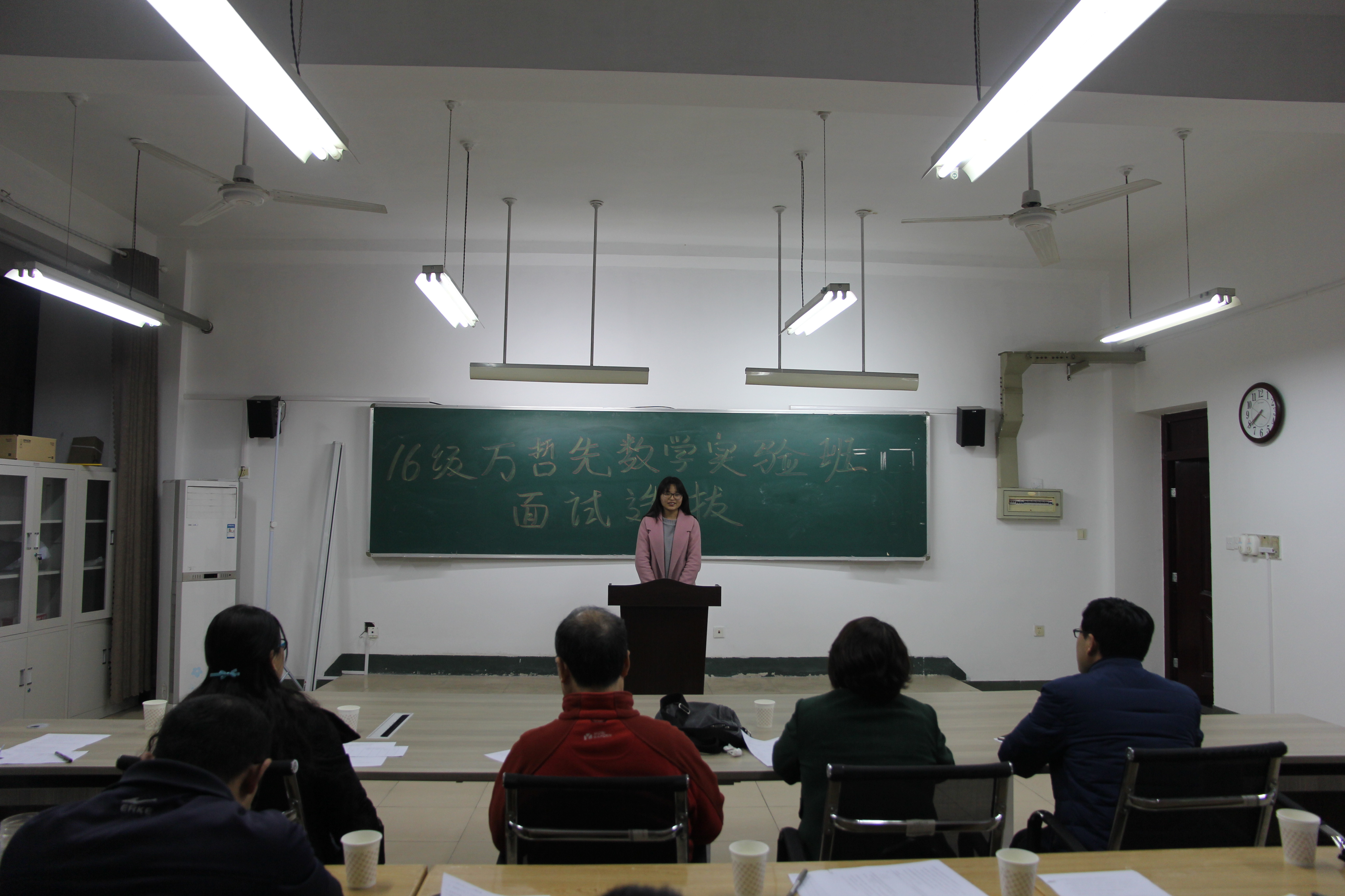 2017年3月27号,理学院于15号教学楼510教室进行了‘万哲先’数学实验班最后一轮的选拔。经相关专业学生自愿报名,资格审查,笔试及综合成绩测评,并且结合2016-2017学年第一学期专业课程成绩和英语学习成绩,最终确定36名学生进入最后的匿名面试。此次选拔的评委由教务处副处长郑兆青、理学院党总支副书记娄春婷、理学院数学系主任 王贵栋、理学院数学系 曹永林教授及部分教师代表担任。