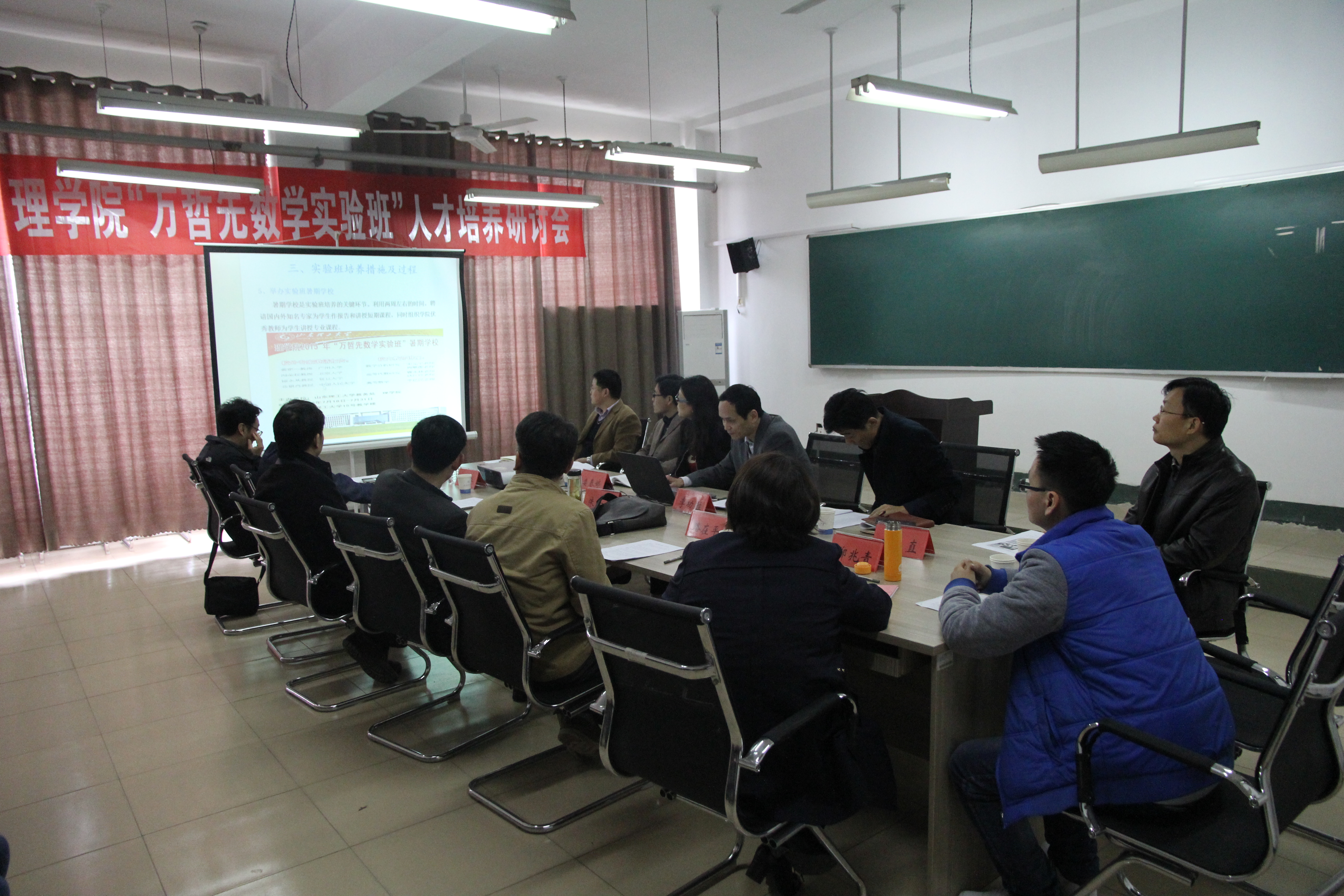 万哲先数学实验班成立于2014年5月,由教务处统筹协调,理学院承担培养任务和日常管理工作,目的是按照“厚基础、重理论、宽视野、强能力”的原则,以学生数学能力提升为导向,培养学生现代数学思维和终身学习意识,使其数学知识面及知识结构达到知名高校同等水平,且通过参与导师科研课题的训练和参加数学建模竞赛等国内外大赛的锻炼,提高学生利用数学解决实际问题的能力,同时提升学生的人文素质和科学素养,使其逐步成长为数学学科及相关学科领域的优秀人才。实验班采用虚实结合的形式,在理学院相关专业(以数学与应用数学、统计学、信息与计算科学专业为主)每年选拔20余人,学生仍在原行政班级,执行原专业教学计划的同时,通过暑期学校、专家讲座等形式辅以数学素质与能力提升方案,提升方案注重学生的专业能力提升和素质拓展。目前实验班已有4级在校学生,其中2013级为今年首届毕业生。经过两年多的探索和建设,实验班取得了可喜的成绩。首届29名实验班毕业生中,考研上线率82.8%,多名同学被上海交通大学、北京师范大学、南开大学、中国人民大学等知名高校录取;该29人在各类科技竞赛中获得奖励158项,发表论文10篇,获得各级各类奖学金及荣誉称号50余项。