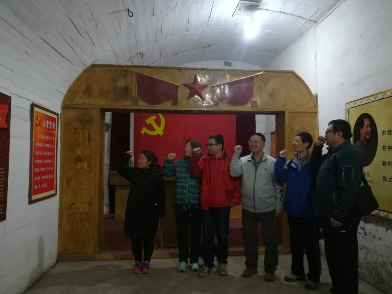 “六一八战备电台”位于山东省淄博市沂源县鲁村镇峨峪村北山中,是华东地区规模最大、保存最完整的一处战备电台。在“六一八战备电台”内会议室,高等数学教研室教工党支部书记 刘宣江主持学习活动,他阐述了现场红色教育的意义,布置了在支部范围内深入开展学习党的十九大精神等学习任务。要求每一位党员同志在把自己本职岗位工作扎实做好的同时,充分发挥先锋模范作用,积极带动周围教师,以一带十,心往一处想,劲往一处使,就能使高等数学教研室的工作再上新台阶,此刻我们重温入党誓词,就是为了不忘初心、继续前行。随后,党员同志们怀着激动的心情,在支部书记 刘宣江同志的带领下,以洪亮的声音重温了入党誓词。