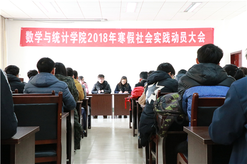 为贯彻党的十九大会议内容精神,使同学们能在寒假期间得到应有的实践锻炼,促进自身与社会更好融合。1月9日下午,数学与统计学院于15号教学楼430教室召开2018年寒假社会实践动员大会。此次会议由团总支老师张丽姣主持,素质拓展部全体成员及16、17级各学生干部代表出席本次会议。
