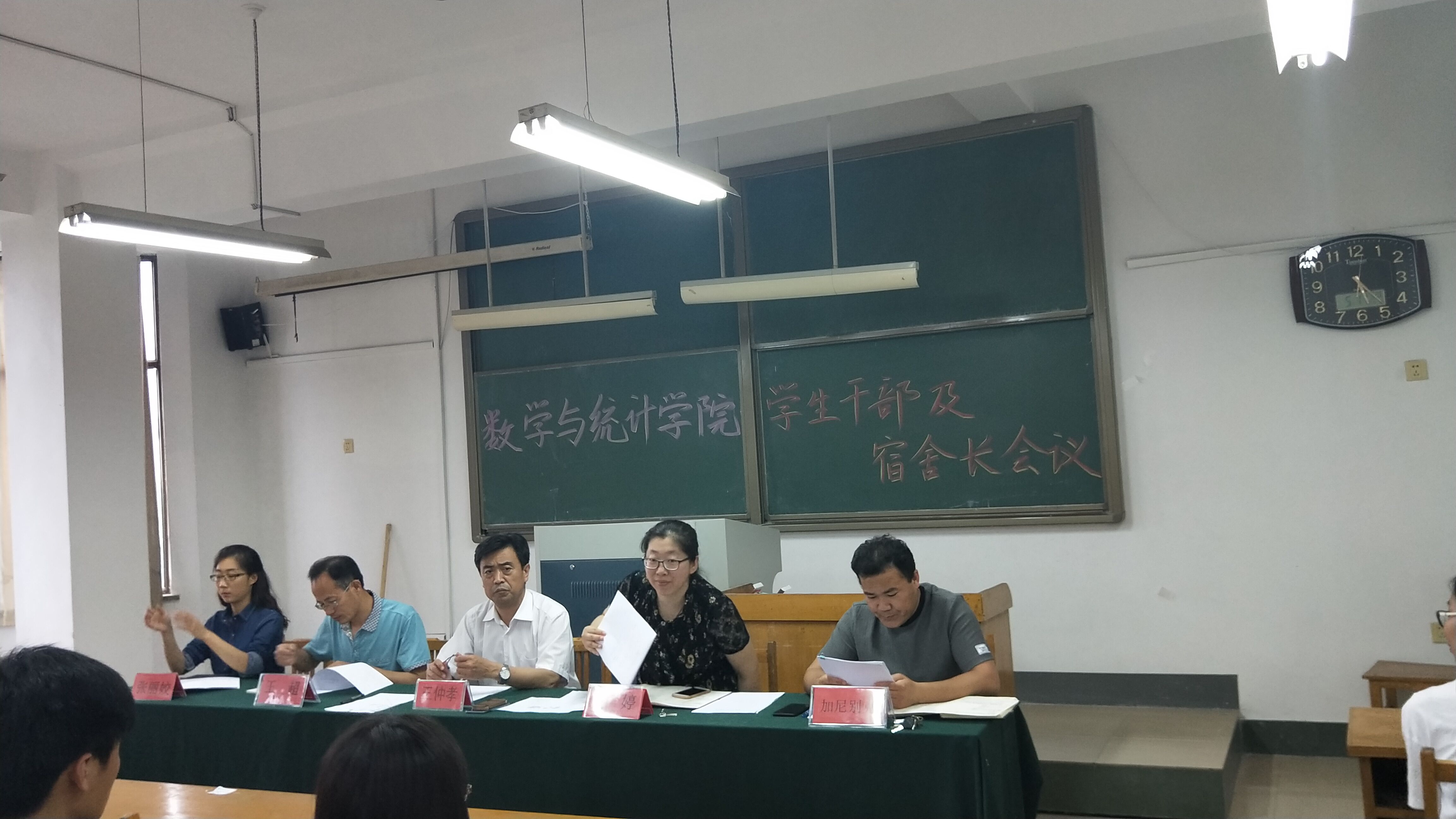 为进一步提高学生干部和宿舍舍长的责任意识和安全意识,数学与统计学院于5月17日下午,在15号教学楼431教室举行了学生干部及宿舍长会议,参加此次会议的人员有数学与统计学院党总支副书记王仲孝、团总支书记王婷,学工办辅导员王超、张丽姣、加尼别克、院学生会宿管中心全体成员、部分宿舍长和学生党员、学生干部。加尼别克老师担任主持人。