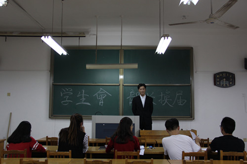 竞选之前首先宣布了关于数学与统计学院学生会各部门的调整,之后各部门的竞选者依次上台,向评委进行自我介绍,从各方面展示个人工作能力、团队协作能力和部门沟通能力,并表达今后的工作展望、努力方向等,各位评委会根据演说及竞选者个人情况进行提问并打分。