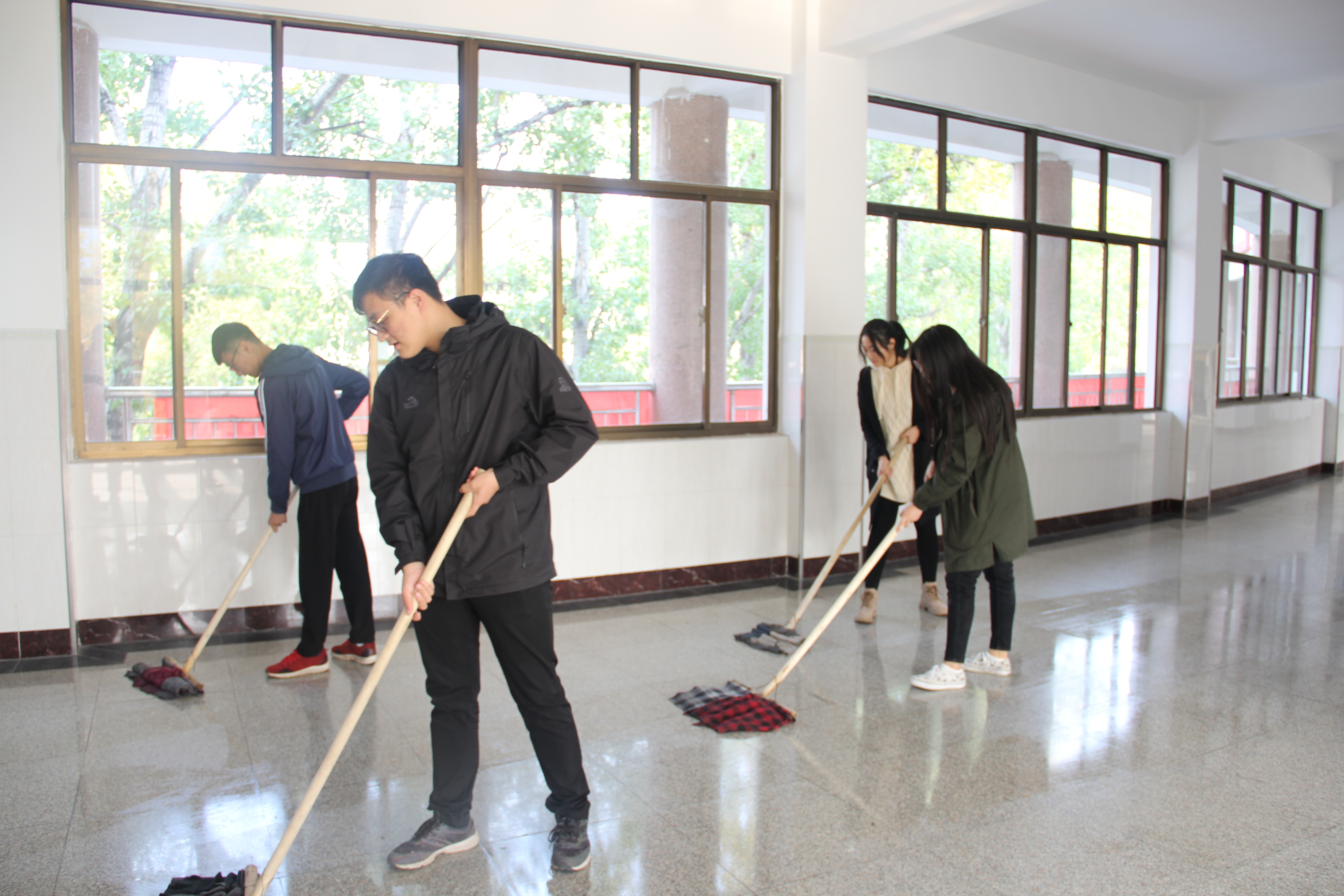 公共卫生清理活动期间,同学们按照小组的形式分成三组对17、18号公寓楼和15号教学楼进行了楼道清理以及教室清扫。尽管过程非常麻烦,但是队员们不怕脏、不怕累,团结协作完成了清扫工作。通过同学们的齐心协力将教室中的垃圾做了及时的清倒,将楼道打扫的一尘不染,为学生们提供了舒心愉悦的学习环境。同时,同学们也感受到为人民服务的快乐与自豪。