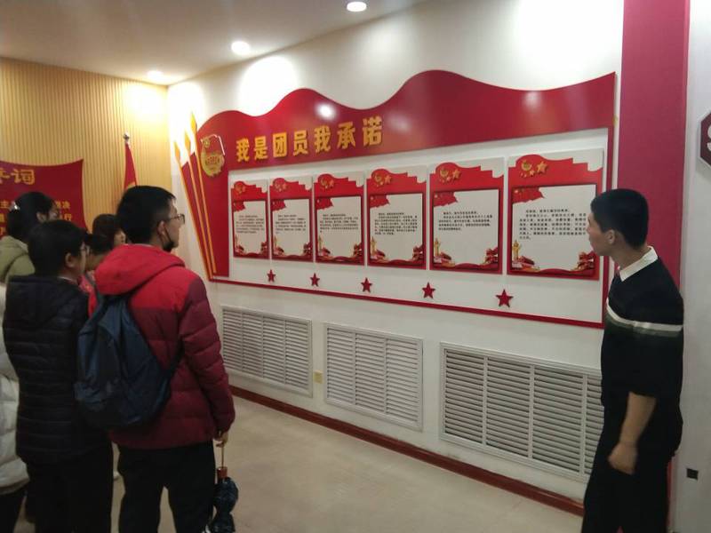 活动伊始,大家一起重温共青团的光辉历史,由主持人向大家讲解共青团自新民主主义时期、社会主义建设初期和改革开放时期发生的重大事件。紧接着,主持人带领大家学习习近平书记的讲话,讲话内容主要从理想、学习、奋斗、读书等方面对青少年进行要求。活动过程中,同学们认真听取主持人讲解,积极参与活动。随后,主持人带大家学习本土先进人物的事迹,对照十带头、十不准准则找不足,并参观优秀团员的团徽,并让大家重温入团誓词,大家昂首挺胸,共同宣誓。活动最后,由班长和团支书对本次活动进行总结,并组织大家对活动存在的问题进行会诊,并讨论这次参观的心得。