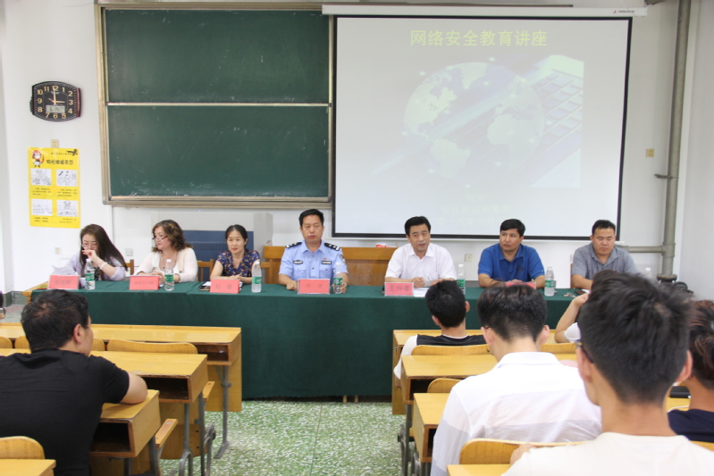在互联网渗透生活点滴的时代,大学生的在校日常已经离不开网络。网络在提供信息化、便利化的同时,其透射的网络安全问题也引起了社会的普遍关注。为此,6月14日下午,数学与统计学院在15号教学楼103教室举办网络安全教育讲座,此次讲座参会人员有党总支副书记王仲孝、学区派出所副所长刘冲、学院辅导员加尼别克、新疆内派老师赵馨、吐鲁洪江、热孜万古丽、张雪晖以及17级全体宿舍长和所有新疆班学生,此次讲座由加尼别克主持。