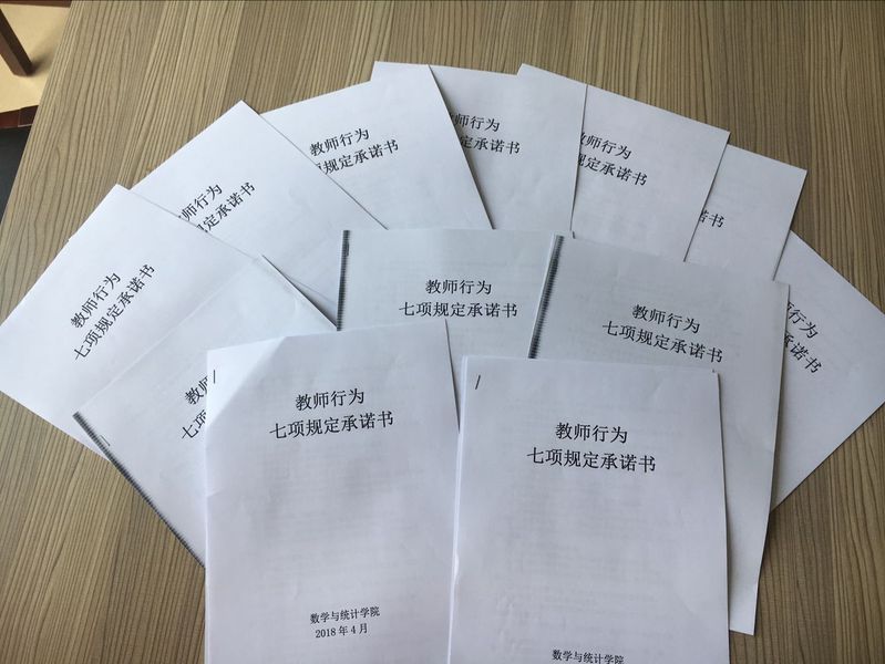 日前,为进一步加强师德师风建设,规范教师教书育人行为,同时积极推进“两学一做”主题教育学习活动,发挥教师党员先锋模范带头作用,数学与统计学院组织全体教师签订《教师行为七项规定承诺书》。学院党总支书记王文锋出席签订仪式,各教师以支部为单位集体参加。
