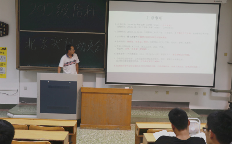 为使2015届学生做好相应的思想准备和学识储备,顺利完成实习任务,同时提高我院学生的从教和就业能力,增强学生的就业竞争力。数学与统计学院于6月27日晚在15号教学楼103教室召开2015级信科北京实训动员会。参与此次动员会的有学工办辅导员王超、15级信科班部分学生,此次大会由 孙中锋主持。