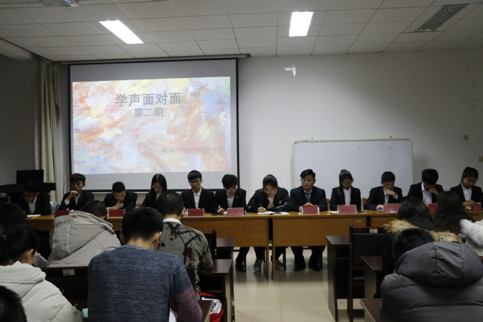 为让同学们更加了解学生会的现阶段工作,增强学生与学生会工作之间的配合,11月26日晚,数学与统计学院在15号教学楼430教室举行了第二期“学声面对面”恳谈活动。参加此次活动的有我院学生会主席王一宇、学生会各部门部长、18级班长、团支书和部分同学。该活动由学习部主办,学生会主席王一宇担任主持。