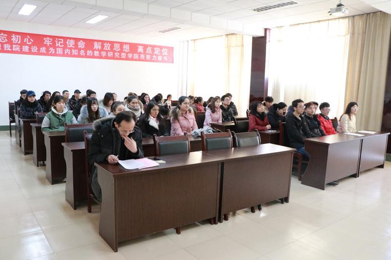 会议伊始, 王贵栋首先对实习活动的安排进行了详细解说。接着, 李功胜对新疆特培班毕业生给予亲切问候并肯定其在校表现,对即将展开的新疆实习支教工作进行全面动员,他希望学生们要从思想上、行动上高度重视此次实习支教工作,做好精心准备,加强安全意识,保证安全稳定不出事,要在岗位上继续保持良好的学习势头,严格要求自己,不断充实自己;同时,李院长表述了自己对教师职业的认识,他认为献身教育事业是一个崇高而伟大的工作,并要求学生们要做好角色转换准备,秉承坚定理想、扎根基层、甘于奉献的信念,按照实习支教要求,积极主动地去做好新疆当地的教育管理工作,以实际行动回报社会。接下来,毕业生代表马文静发言,她在表达对学院的感激之余,表示将全身心投入实习支教工作,承担教师责任,以己之学,回馈社会。最后, 巩本学结合往届毕业生的实习反馈,对即将面临的工作环境、日常生活及人身安全等情况进行简要介绍,并希望同学们崇德修身,永葆学习热情;心怀感恩,发扬优良师德;忠于教育,创造辉煌业绩。