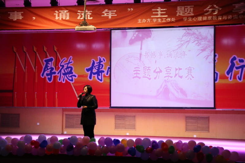 “恰同学少年,风华正茂”。为了丰富大学生校园生活,缓解学习和生活压力,11月23日晚,由数学与统计学院承办,学生工作处、学生心理健康教育与咨询中心主办的“书遗憾,诵流年”主题分享演讲比赛在三号报告厅拉开序幕。此次演讲比赛我院有幸邀请了学生工作处副处长兼大学生事务中心主任、学生心理健康教育与咨询中心主任郭奎霞老师;数学与统计学院党总支副书记王仲孝老师;学生工作处学生心理健康教育与咨询中心副主任 李霞老师;学生工作处学生心理健康教育与咨询中心张爱莲老师、王素霞老师、滕亮老师;资源与环境学院学生工作办公室张倩老师。王睿、贾文璐担任此次主持。