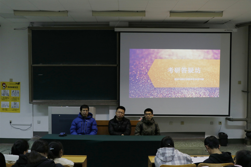 为了让同学们建立详尽的近期计划和远程规划,激发同学们的学习热情,为同学们拨开眼前的迷雾,解决同学们对考研的疑问,理清考研的思绪。12月13日晚,数学与统计学院学习部在15号教学楼103教室举办考研答疑坊活动。本次活动由学习部部长郭林杰主持,数学系孙俊涛老师、信科系郑明文老师、统计系李夫明老师担任主讲。