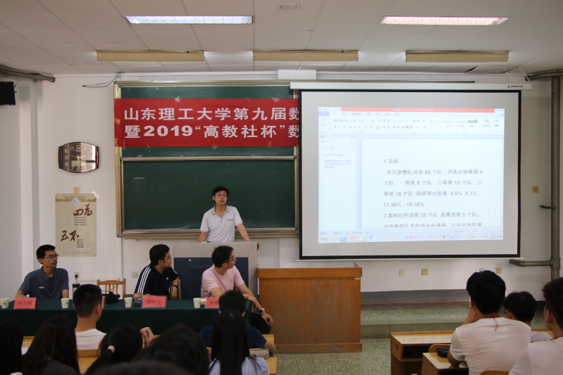 会议伊始,丁树江对本次校赛做出总结并对2018高教社数学建模竞赛和2019美国教学建模竞赛中的违规队员教学通报以及宣布其处罚办法,旨在告诫同学们规范参加数学建模竞赛,严格遵守规章制度、文明参赛,诚实参赛。随后,由老师们为获奖者颁奖同时也对各位参赛选手表示祝贺,同时勉励他们戒骄戒躁,在今后的学习和生活中,继续秉承努力奋斗的精神。本次活动评选出特等奖4名、一等奖8名、二等奖10名、三等奖16名。最后,由丁树江介绍了我校举行的2019高教社杯全国大学生数学建模竞赛以及其报名事宜与选拔的大致方式,希望能够通过本次活动培养学生的创新意识以及运用数学方法和计算机技术解决实际问题的能力。