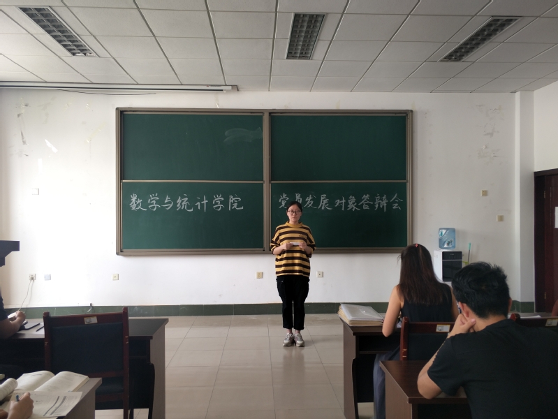 为考察党员发展对象的政治素质和党性修养,帮助他们端正入党态度、提高政治觉悟,6月6日,数学与统计学院在15号教学楼430室举行党员发展对象答辩会。我院学生第二支部书记张丽姣,辅导员加尼别克,此次党员发展对象以及入党积极分子代表参加此次活动。