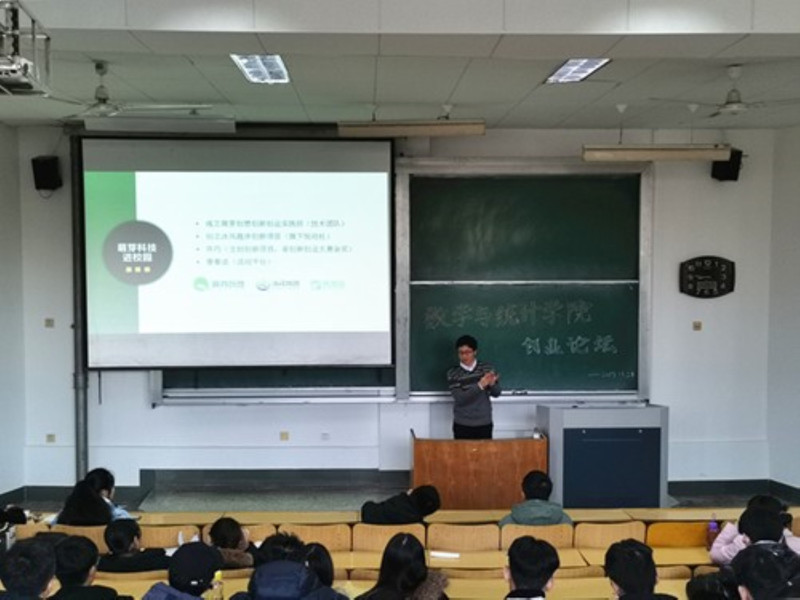 11月28日下午,数学与统计学院在15教学楼204教室举办了“创业论坛”活动。此次活动活动由山东萌芽网络科技有限公司总经理李思章主讲,科创中心主任刘贵莹主持,学院各班同学代表参加此次活动。