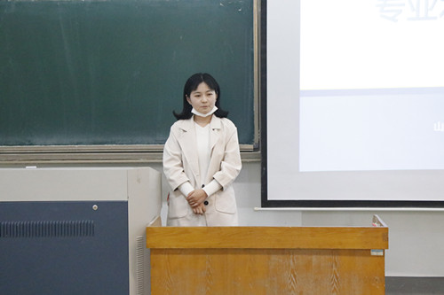 会议伊始,我院副院长王贵栋首先介绍了两位优秀的2013级校友并代表学院全体师生向两位校友的到来表示热烈欢迎。接着是王敏和张丽珍两位校友结合自己的亲身经历分别为大家分享自己的求职经验和考研经验。