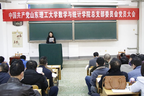 全体党员审议并通过了工作报告,审议通过了《数学与统计学院党总支换届选举办法》(草案),采取无记名投票方式差额选举了王玉冰、王贵栋、田萌、孙俊涛、李功胜、张生元、曹玉霞7名同志为数学与统计学院新一届党总支委员会委员。