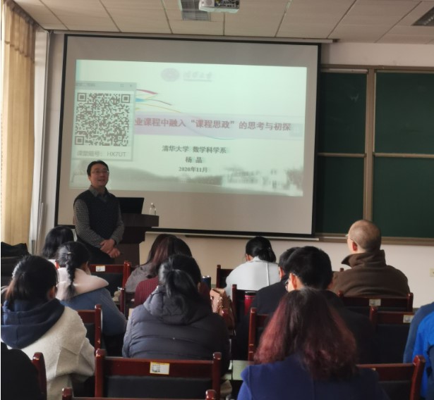 报告结束后,杨教授与参会老师关于数学课程如何进行课程思政进行了深入交流,老师们反映通过此次报告深受启发,将会在自己的课程思政方面积极推进。