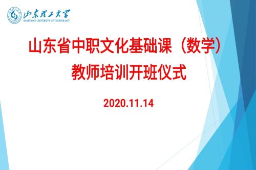 11月14日上午,由山东理工大学数学与统计学院承办的2020年山东省中职文化基础课骨干教师培训班(数学)开班仪式在线上举行。山东理工大学数学与统计学院党总支书记王玉冰、中职基础课培训项目组全体工作人员及来自全省院校的骨干教师参加了开班典礼,本次开班典礼由数学与统计学院副院长王贵栋主持。