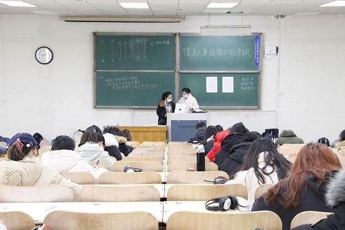 考试伊始,学习部监考员将考试注意事项及考试流程写在黑板上,并在考试前几分钟向考生宣读考试规则。严格遵守疫情防控规定,合理安排考前及考后流程。本次考试的考试题型、考试流程及考试环境都严格遵守全国大学生英语四六级考试标准,分为听力、阅读、综合、翻译和作文。随着考试铃声响起,考生们开始作答试卷。