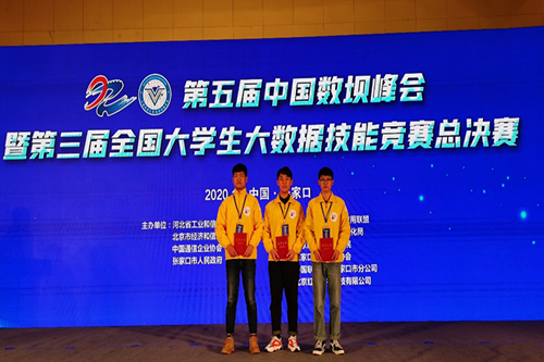2020年11月28日,“第五届中国数坝峰会”与“第三届全国大学生大数据技能竞赛总决赛”在张家口同期举办,我院2018级信息与计算科学系陈常旺、岳喜洲、杨孟超三名同学所组的‘打败自己就好’队伍荣获全国二等奖的优异成绩,这也是参赛的山东高校取得的最好成绩。指导老师何华、周世祥荣获“优秀指导教师”荣誉称号。