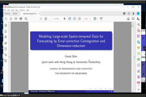 2020年12月10日下午,澳大利亚墨尔本大学钱国骐教授及北京大学艾明要教授应邀与数学与统计学院的师生进行学术交流,在腾讯会议举行了两场主题为“统计与数据科学”的线上学术报告。报告由统计系副教授郭广报主持,统计系部分师生聆听了讲座,并与两位教授进行了交流。