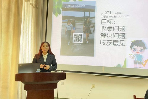 会议伊始,主讲人李倩文首先介绍了近期学院同学反映的权益问题。她从近日对大一大二同学展开的小数苗问卷调查结果反映的问题如教室占座等现象展开讲述,并从学、食、住、行四方面举例说明,具体讲解了将问题分类并依次阐述解决过程及方案。接着,是现场提问的环节,参与本次活动的学生代表向各部门负责人提出自己有疑问的地方,负责人们则热情细心地一一解答同学们的疑问。紧接着,主讲人又向同学们介绍了通过小数苗、向生活委员反应、小树苗意见箱等维权基本途径,并对于同学提出的对小数苗需要更大力的宣传做出了详细解答。最后,主讲人制定下学期的目标并对新版块的开发做了基本的介绍。