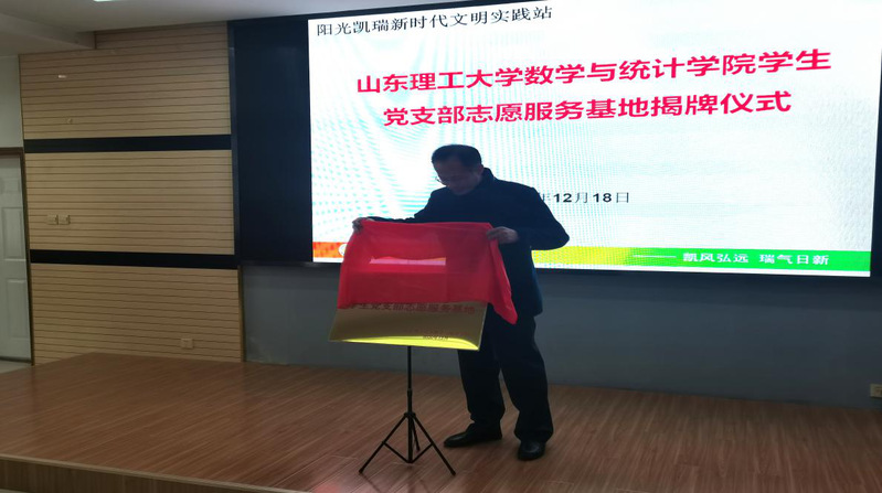 12月18日下午两点,山东理工大学数学与统计学院学生党支部在张店区凯瑞小学举行了志愿服务基地揭牌仪式。数学与统计学院学工办主任、团总支书记王超老师,以及部分党员代表一并参加此次活动。