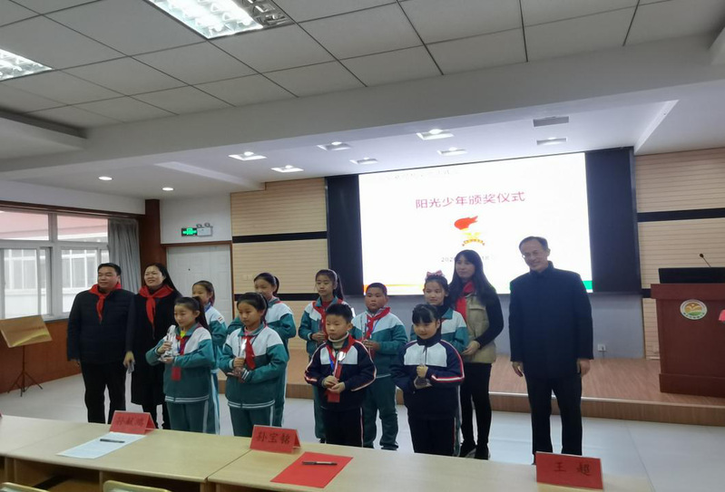 会议第三项,由凯瑞小学领导与数学与统计学院王超老师共同为凯瑞小学评选出的阳光少年颁奖。阳光少年就像是一个个播种的火种,在各个年级掀起潜移默化、不可忽视的带头作用。