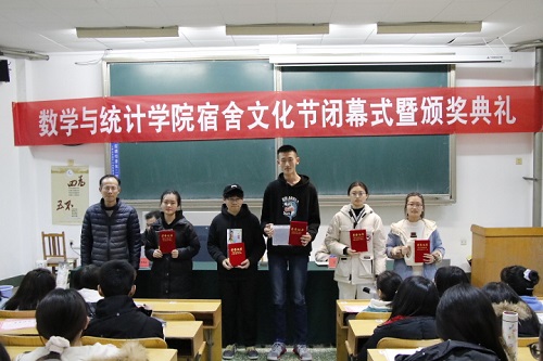 为加强宿舍文化建设,营造积极向上、干净整洁、安全和谐的宿舍氛围,培养学生良好生活习惯,数学与统计学院于2020年11月举办宿舍文化节,一个月以来我院学生积极参与活动,如今宿舍文化节终于圆满落幕。为表彰在宿舍文化节中获得优异成绩的宿舍和个人,对宿舍文化节进行总结,我院于12月24日下午16:30在15教103教室举办宿舍文化节闭幕仪式暨颁奖典礼。我院团总支书记王超、辅导员王凤璐、学生会宿舍管理中心全体成员和19级20级全体班委舍长以及获奖人员参加了此次活动。活动由我院辅导员加尼别克·阿布拉主持。