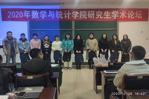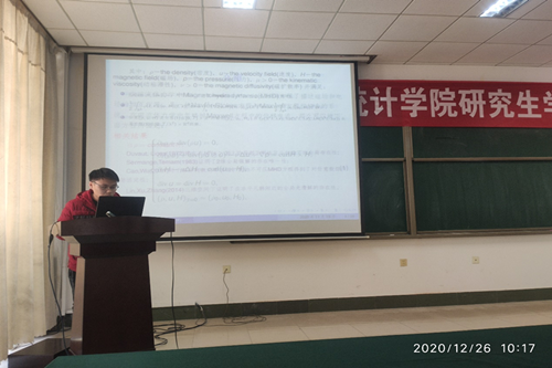 为浓厚数学与统计学院的学术氛围,分享高水平的研究成果和优秀论文写作经验,激发研究生的科研兴趣,数学与统计学院于2020年12月26日在15号教学楼430会议室成功举办了研究生学术论坛。数学与统计学院院长李功胜、部分教师以及全体研究生参加了此次学术活动。论坛由副院长孙俊涛教授主持,