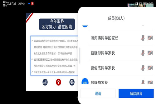 交流会主要涉及今年毕业形势、当前就业创业政策以及本届毕业生当前就业情况通报。其中关于就业创业政策,张丽姣通过基层就业、自主创业、征兵入伍、军队文职等各类就业渠道和政策形势为家长逐一展开讲解,并就毕业生制作和投递简历的注意事项进行了详细说明,与各位家长沟通毕业生就业心态和就业观念的重要性,要求各位毕业生应当保持乐观态度,积极就业、主动就业。部分家长通过平台对话框提出问题,并在线上得到了及时解答。交流会结束之前,张丽姣还将本学期以来持续更新汇总的招聘信息库通过线上渠道发到了各位家长手里,保证各位家长和毕业生均能在考研结束之后系统查看,择其所需,主动出击。此次线上家长会大大促进了学院与毕业生家长的双向沟通,家长们进一步了解了学院就业工作的开展以及就业帮扶具体举措,辅导员老师也对学生家长的想法和态度有了更深入的了解,这为2021届毕业生就业工作的顺利开展奠定了良好基础。毕业生家长们也表示会配合学院做好学生就业工作,帮助学生树立正确的择业观,更加顺利地度过就业季。