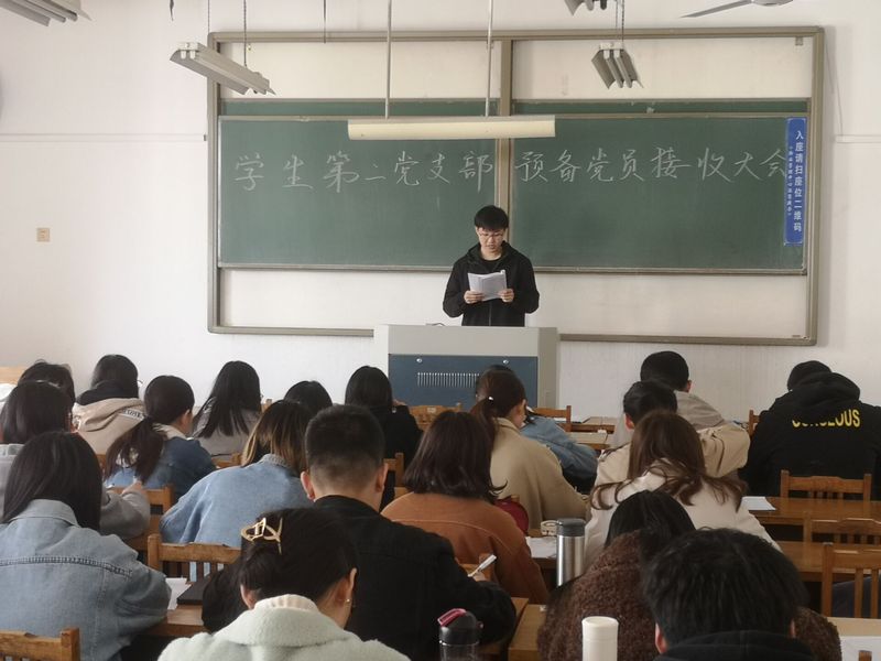 2021年3月17日,数学与统计学院学生第二党支部于15号教学楼432教室顺利召开预备党员接收大会。学生第二党支部全体党员参加此次会议,会议由支部书记张丽姣主持。