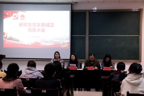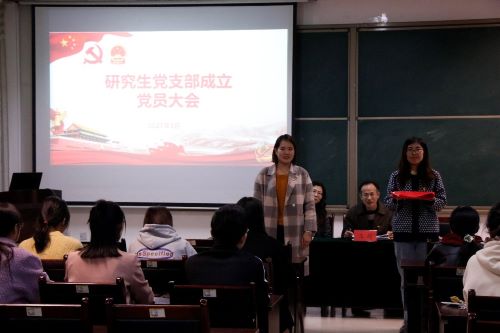 会议分研究生党支部成立大会、支部选举党员大会两个阶段进行。会议伊始,党总支书记王玉冰宣读《关于成立研究生党支部的通知》并讲话。她首先代表学院党总支对研究生党支部的成立表示祝贺。指出,为有效提高研究生党员的教育、管理、监督和服务水平,根据上级党组织有关文件要求,经党总支研究决定,成立研究生党支部。最后对研究生支部提出两点要求:一是研究生党支部要加强示范引领,把战斗堡垒作用发挥好。要学习制度建立规范,加强谋划注重落实,培育特色突出重点。她指出,要结合研究生党员的特点,设计支部党建创新活动计划和志愿服务活动载体,在服务学院学风建设、开展学科竞赛、科研活动方面做出积极贡献。第二,研究生党员加强示范带动,把先锋模范作用发挥好。要加强理论武装,认真参加党的组织生活,积极发挥作用。她强调,要以先进党员的标准严格要求自己,在日常学习科研、生活和工作中争做“排头兵”和“领头雁”,积极参加党支部的活动,出色完成党组织交办的各项任务,努力成长为有理想、有本领、有担当的社会主义建设者和接班人。她表示,学院党总支今后将更加重视对学生党建工作的领导和统筹,对研究生党支部的各项工作给予更多支持和指导,研究生党支部也要扎实开展好各项工作,协同联动,聚焦聚力,争取建设成为学校研究生样板党支部。