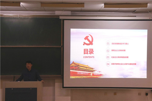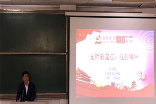 党史学习教育动员大会(教师)邀请马克思主义学院王在亮博士作党史学习教育专题讲座,会议由学院院长李功胜主持,学院全体教职工参加。会议伊始,马克思主义学院王在亮博士为全体教职工作题为《光辉的起点——红船精神》专题讲座,他从红船精神与中国共产党的诞生、红船精神的历史内涵以及红船精神的新时代价值三个方面为大家上了一堂生动深刻的党课,既有珍贵生动的史料展示,又有详尽深入的理论阐释,老师们收获很大,感受颇深。