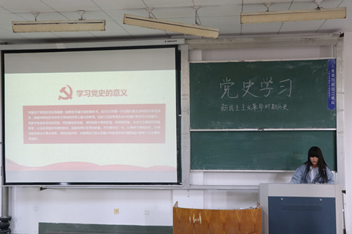 为认真学习党的历史,继承和发扬光大革命传统、党的优良作风,提高同学们的认识能力和处理实际问题的能力。4月17日下午,数学与统计学院在15号教学楼206教室举行党史理论学习专题活动,我院19级学生参加了此次活动,活动由信科1901班团支书韩亚男主讲。
