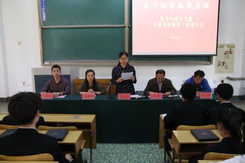 为进一步树立和宣传数学与统计学院青年学生的良好形象,充分发挥优秀学生的典型示范作用,激励广大学生积极进取、勤奋学习,促进优良学风院风形成,5月8日下午,数学与统计学院在15教105教室召开“五四青年榜样”表彰大会,我院党委副书记曹玉霞,我院辅导员张丽姣、加尼别克·阿布拉、刘曌阳出席本次表彰大会,受表彰人员以及学生代表参加会议。大会由我院团总支书记、学工办主任王超主持。