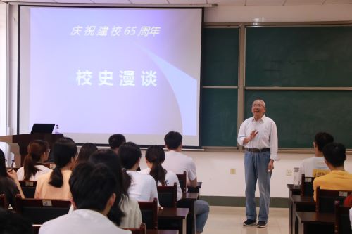王兴南以“校史漫谈”为题,分五个阶段即创业时期、中兴时期、动乱挫折时期、恢复整顿时期、开拓创新时期阐述了学校发展历史沿革,结合自身经历,将学校曾经的曲折与辉煌向同学们娓娓道来,语言朴实无华又不失幽默,言语间无不流露出一位80多岁老党员对母校的脉脉深情,打动了在场所有听众。讲座最后,王兴南用校党委书记吕传毅的话“校友在哪里,母校就在哪里,校友是什么,母校就是什么,校友有多高,母校就有多高”勉励各位学生党员不忘初心,砥砺前行。