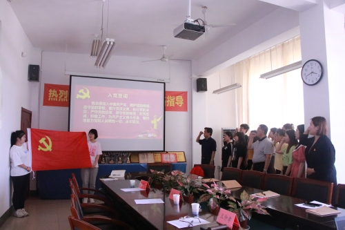 最后,请王仲孝同志带领12名新发展党员进行入党宣誓仪式,庄严宣誓后,由老党员给新党员佩戴党徽,并颁发《中国共产党章程》。党支部集体给3位老党员过 “政治生日”,送上政治生日贺卡和鲜花,表达敬佩之情和祝福心意。