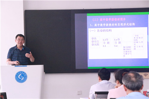 报告会第一阶段由院长李功胜主持。在报告会上,山东大学张天德教授以“大学数学教学创新思路及实践”为题从金课、课程思政及新形态教材分享了教学实践过程中的体会心得;山东科技大学赵文才教授围绕高等数学一流课程建设交流了教学创新及教学团队创新建设;淄博五中杨本春老师介绍了新高考模式下高中数学教材的变化与实施。