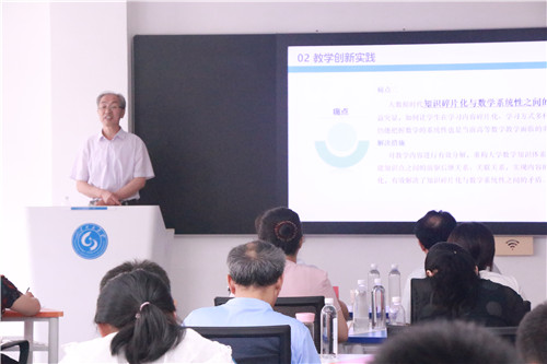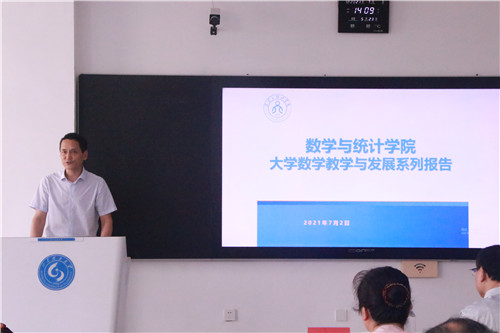 为进一步提高课程建设质量,深化课堂教学改革,提高教师教学水平和教学质量,7月2日下午,数学与统计学院大学数学教学与发展系列报告会在15号教学楼协同育人中心208室举行。本次活动邀请到了山东大学教授张天德、山东科技大学教授赵文才、淄博五中正高级教师杨本春、电气学院副院长孙贤明、交通学院副院长刚宪约作报告,教务处郑兆青副处长、数学与统计学院院长李功胜、学院部分教师参加了本次报告会。报告会由学院副院长王贵栋主持。