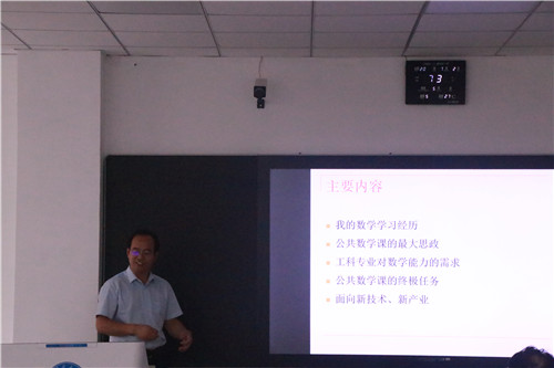 会议伊始,李功胜致辞。首先热烈欢迎和真挚感谢参加本次报告会的领导专家,简要介绍了学院的师资队伍、专业建设、学科建设等基本情况以及大学数学教学部的基本情况。他表示,大学数学教学关系全校人才培养质量的提升,新的形势下,学院深入落实学校加强基础课教学的要求,积极推动公共数学教学改革和分层次教学,希望各位专家就如何推进公共数学教学改革、如何提升教学质量传经送宝、建言献策。