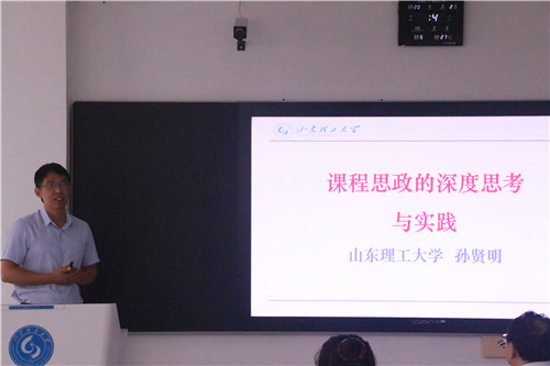 报告会第二阶段由教务处副处长郑兆青主持。电气学院副院长孙贤明以“课程思政的深度思路与实践”为题阐述了如何通过课程思政实现对学生的价值引领、知识培养、能力塑造;交通学院副院长刚宪约介绍了专业认证背景下工科专业对数学能力的需求。