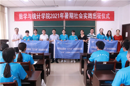 7月14日,数学与统计学院在15号教学楼430会议室举行2021年暑期社会实践出征仪式。出征仪式分山东理工大学“情系新疆·融助发展”专项社会实践团出征仪式以及学院社会实践团出征仪式两场。
