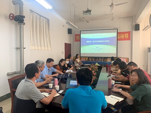 9月3日上午,数学与统计学院在15号教学楼414会议室举行了国防科技大学李建平教授的一流本科课程建设与申报报告会。教授委员会主任王建锋主持了本次报告会,学院原副院长王贵栋、各系室主任和教师代表参加了此次报告会。