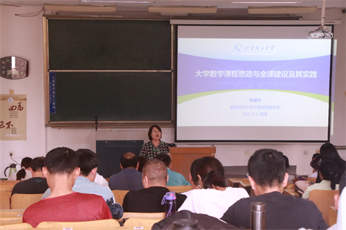 9月2日下午,数学与统计学院在15号教学楼103教室举行了国防科技大学李建平教授的大学数学课程思政与金课建设报告会。教务处副处长郑兆青、学院党委书记王玉冰、院长李功胜、教授委员会主任王建锋和全体专职教师参加了此次报告会。