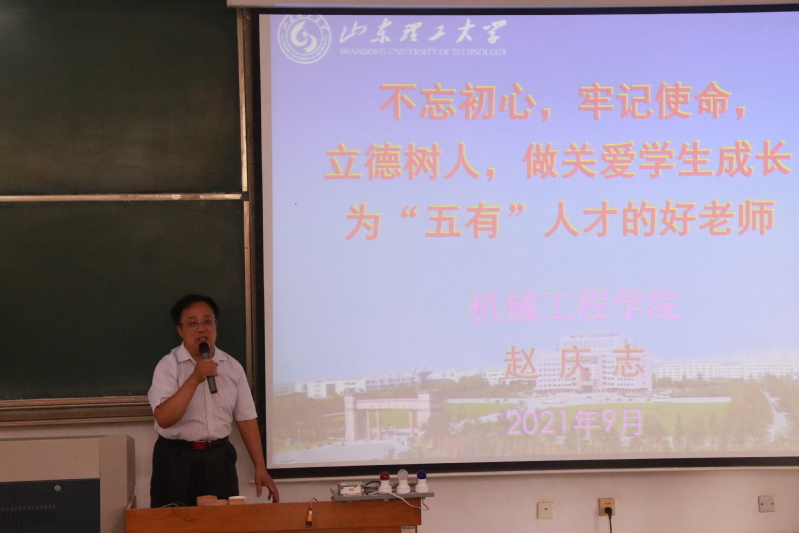 为庆祝教师节,我院特邀全国师德标兵、机械学院赵庆志教授作师德师风专题报告。赵庆志以《不忘初心,牢记使命,立德树人,做关爱学生成长为“五有”人才的好老师》为题,从“感谢我的老师对我辛勤培养教育的案例”“自己关爱大学生健康成长成才的几点做法”“OBE教学理念的内涵及其中国化”“基于OBE教学理念的《数控技术》网络信息化理实一体化加实训的混合式教学模式简介”“基于OBE教学理念的项目教学法:低压电气控制试验台设计、安装、调试、故障测试与维修教学与实施”“一流的教育教出思想和灵魂,教书育人无止境”六个方面跟大家分享了他教书育人的所思所想所作所为,点点滴滴朴实无华,桩桩件件感人至深,赢得了在场教师的阵阵掌声。