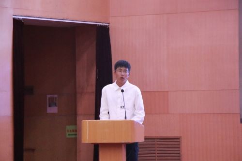 新生代表信科2103班李明臻向全体新生发出倡议,明确目标,刻苦钻研,做勤奋的山理工人;尊敬师长,团结互助,做有爱的山理工人;严于律己,遵规守纪,做自律的山理工人。