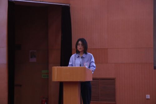 在校本科生代表统计1801班项莉雯向新生分享了自己的大学学习和生活感悟,要坚守初心,勇担使命;要树立目标,知行合一;要敢于挑战,提升自我。