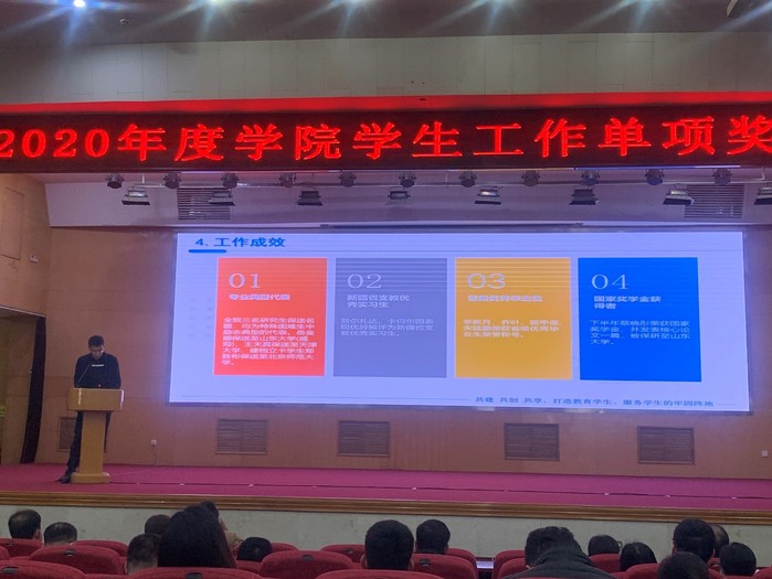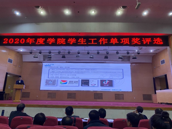 10月22日、23日,学校举行2020年度学院学生工作单项奖评选活动,具体包括网络思政工作、班级建设工作、学生资助工作、文明宿舍建设四个单项工作的评选。