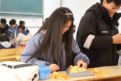 为了提高同学们对数学文化的认识,数学与统计学院于近日在15教数创空间与103教室开展智力挑战赛活动。本次活动开设鲁班立方、走珠迷宫、积木金字塔、魔方、九连环五个游戏,以喜闻乐见的形式让同学们感受到数学的魅力。一起来看看这场头脑风暴吧。